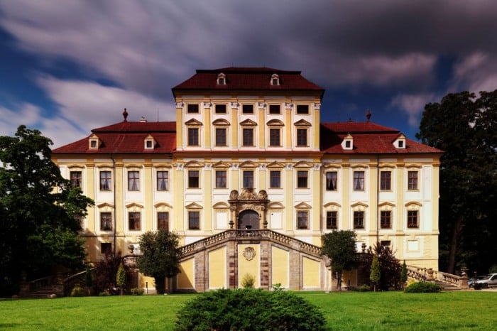 Na okraji města se nachází barokní zámeček, který vznikl v 17. století. Dříve na stejném místě stával hrad Borek, který byl ale do značné míry poničen v době husitských válek. V 15. století byl hrad přestavěn na renesanční zámek a díky červené fasádě se pro něj vžilo jméno Červený Hrádek. Za třicetileté války byl zámek silně poničen, původní stavba byla následně stažena a Jan Adam Hrzán z Harasova nechal vystavět nový barokní zámek.